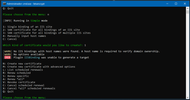 "ERROR: Plugin IISBinding was unable to generate a target" while enabling the SSL Certificate for your website